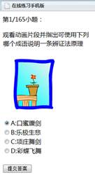 从主菜单选择练习,学生可在管理员指定专业、课程中选择章节,按多种方式练习,选择提交答案可查看标准答案及自己所做答案,选择重新答题可反复练习。选择收藏到可以分类收藏试题,还可以选择试题评价对试题提出意见。